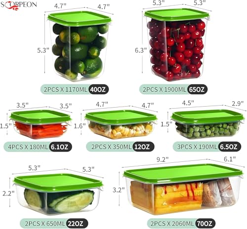 - Durable & Versatile Sizes for All Needs: The Scorpeon 17-piece set includes a variety of container sizes, perfect for storing snacks, fruits, vegetables, sauces, or full meals. Ideal for meal prep, lunch boxes, and food preservation, these reusable food containers with lids offer practical solutions for all your storage needs.