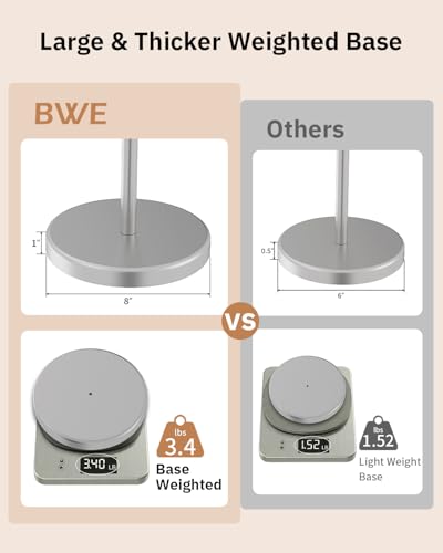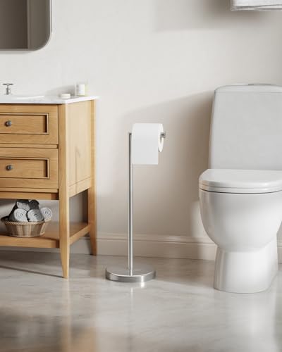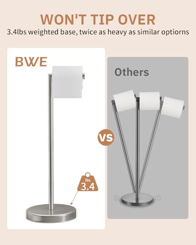 BWE - BWE Bathroom Toilet Paper Holder Stand Brushed Nickel SUS304 Stainless Steel RV Modern Freestanding Toilet Paper Roll Holder for Bathroom Kitchen and Washroom with Heavy Weighted Base