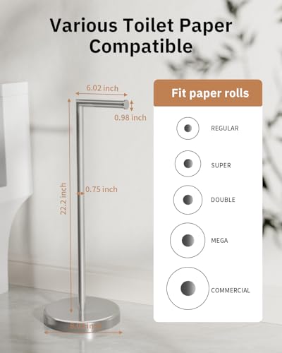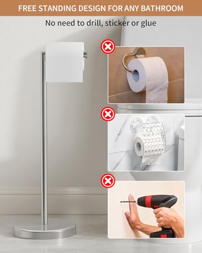 - 【Free Standing Design】Portable toilet paper roll stand ofter great flexibility as they are very easy to move,it is easy to move anywhere in your house,Designed to allow placement where convenient in bathroom. No drilling needed.