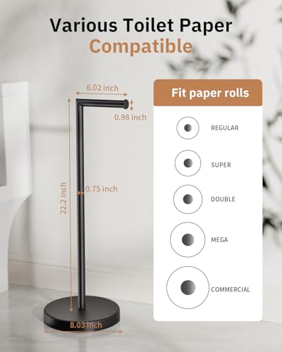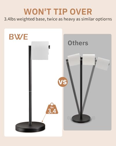 BWE - BWE Bathroom Toilet Paper Holder Stand Matte Black SUS304 Stainless Steel RV Modern Freestanding Toilet Paper Roll Holder for Bathroom Kitchen and Washroom with Heavy Weighted Base