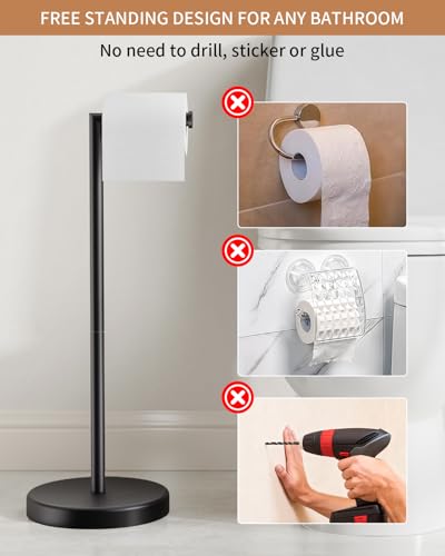 - This freestanding toilet paper holder is made of high quality stainless steel, corrosion resistant, rust proof and suitable for wet environments such as bathrooms and kitchens.