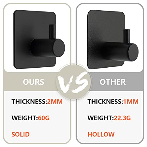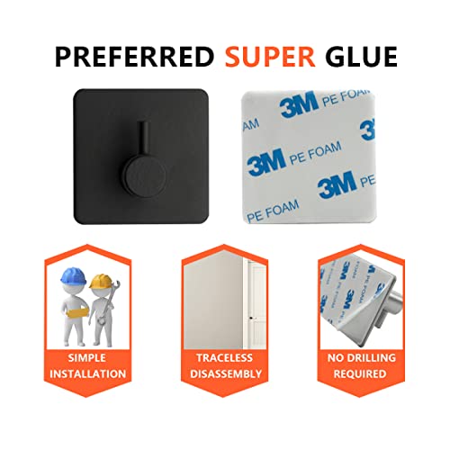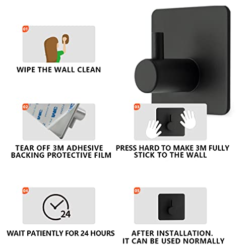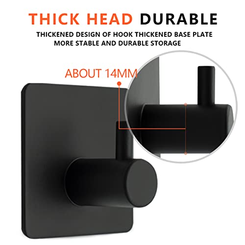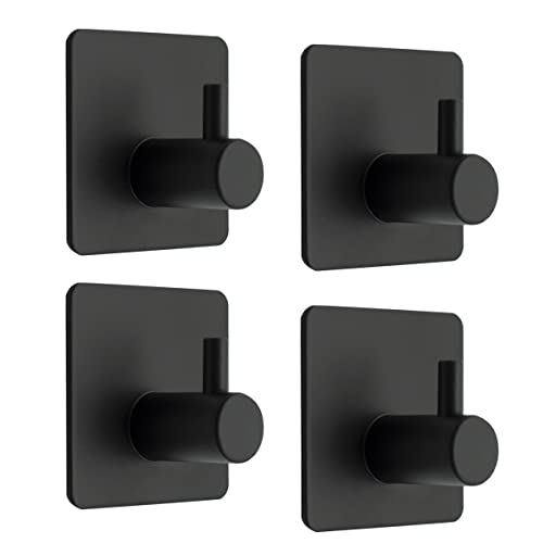 Bwintech - 4 Pcs 1 Hook Waterproof Stainless Steel Self Adhesivie Hooks for Bathroom, Towel,Hat,Coat Bedroom Heavy Duty Door Hanger Hooks (Matt Black)
