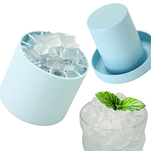 Bworppy - قوالب مكعبات الثلج من بوربي، صانع مكعبات ثلج محمول، صواني ثلج أسطوانية بتصميم شبكي، صواني ثلج للفريزر، قوالب ثلج ثلاثية الأبعاد، سهولة إخراج الثلج بالضغط، أزرق – قطعة واحدة