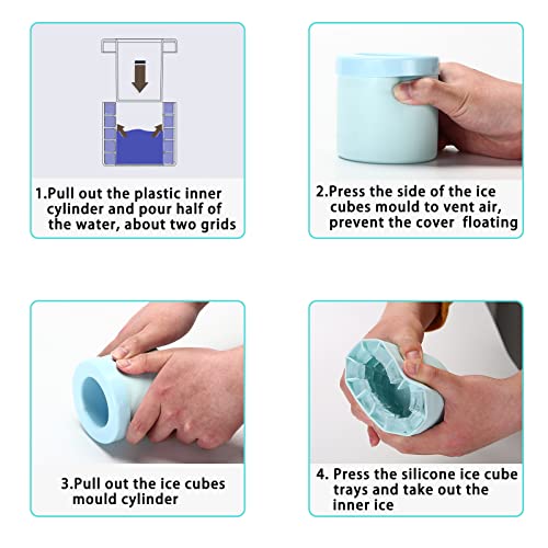 - 【سهولة تحرير الثلج】يمكنك الضغط على أوضاع مختلفة من القالب لفك مكعبات الثلج، أو صب الماء الساخن فيه والانتظار لمدة 10 ثوانٍ تقريبًا، ثم صب الماء الساخن، وسحب الأسطوانة الداخلية لقالب مكعبات الثلج والضغط على القالب لفصل مكعبات الثلج.