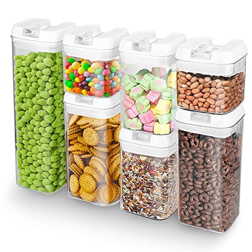 - ✔ KEEP YOUR FOOD FRESH, SAFE & ORGANIZED - This Premium Set of 7 Airtight Storage Containers allows you to safely store away your food without worrying about insects, rats or any other pests. They are suitable for almost anything you need to keep fresh, including cereals, snacks, flour, nuts, sugar, coffee, tea, dry pet food and even liquids!