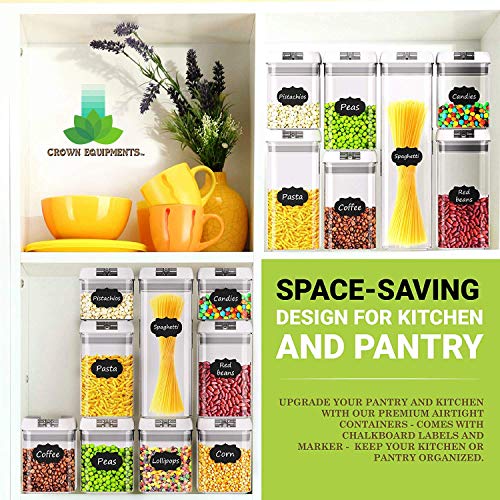 - ✔ PERFECT COMBINATION OF SIZES FOR A VARIETY OF FOODS - Made from Premium Acrylic, the Containers are very similar to glass, but not as heavy. Clear bases and windows in the lids allow you to view the contents at a glance. The Set includes 2 Small Containers (17.6oz / 0.5 L), 2 Medium Containers ( 28oz / 0.8 L), 2 Tall Containers (42.2oz / 1.2 L), 1 Pasta Tall Containers (64.2oz / 1.9 L) with a BONUS of 1 Chalkboard Marker and 16 Pieces of Chalkboard Labels!