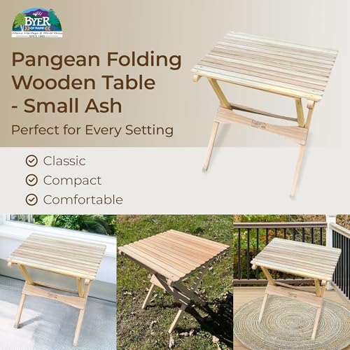 BYER OF MAINE - BYER OF MAINE Pangean Folding Wooden Side Table – 18" H x 16" W x 16" H – Portable Compact Outdoor Table – Folding Hardwood Table for Patio, Porch, Balcony, Camping & Garden Use