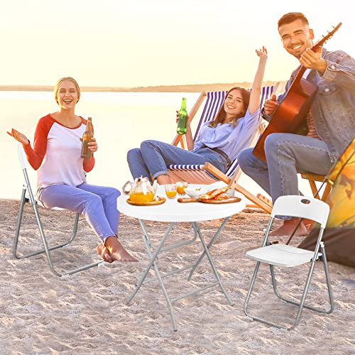 Byliable - 32" Round Folding Card Table, Foldable Plastic Indoor Outdoor Portable Commercial Banquet Coffee Dining Table for Parties, Patio, Wedding, White Granite