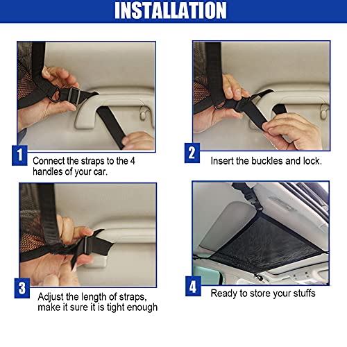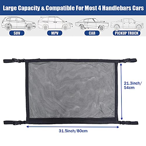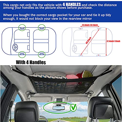 - ✅ NO BLOCKING VIEW - The adjustable straps and strong mesh of the car ceiling cargo net can avoid stuff sagging, and affecting the rearview mirror. Items will be better fixed on the roof of the car by the car net pocket, the car ceiling storage pocket will not touch the heads of passengers and children