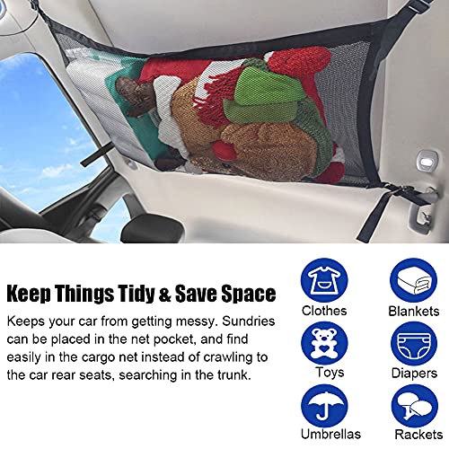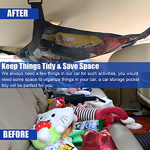- ✅KEEP THINGS TIDY - The car ceiling net storage makes full use of unused space to store sundries like diapers, clothes, towels, toys, blankets, and more. The car ceiling storage can keep your back seat from getting messy. You can find your things easily instead of crawling to the car rear seats, looking for them in the trunk.