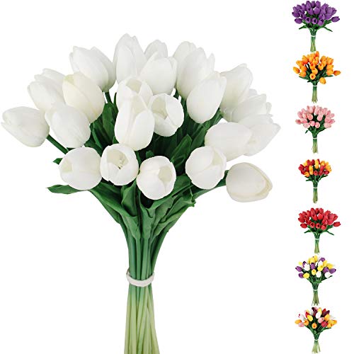 - 30PCS PERFECT SIZE TULIPS - This tulips artificial flowers package includes 30pcs tulips. A variety of vibrant colors for your choice. Flowers tulips are about 13.4inch / 34cm high.