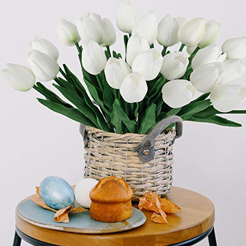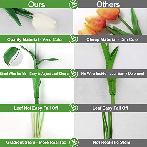 - REAL TOUCH FEELING - These fake tulips are authentic with real touch feeling, Vivid Color, and fresh-looking. The tulips flowers is the best choice if people may allergic to flowers.