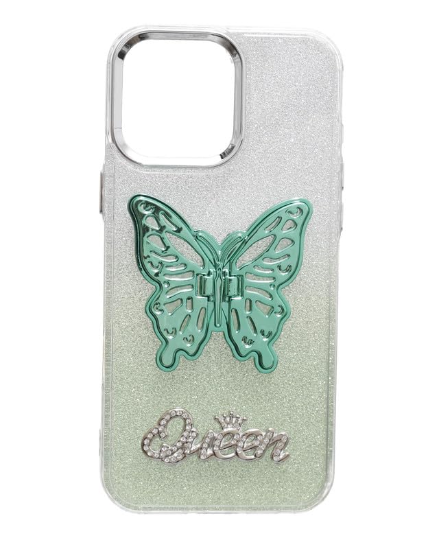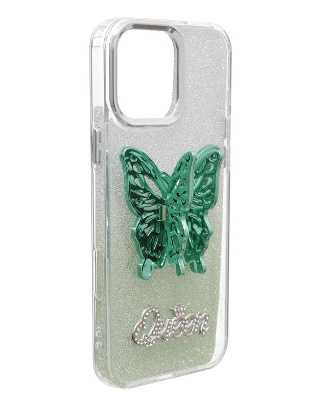 C.F.S - C.F.S Glitter Back Phone Protection Cover With 3D Butterfly Hidden Stand For iPhone 16 Pro Max - Green