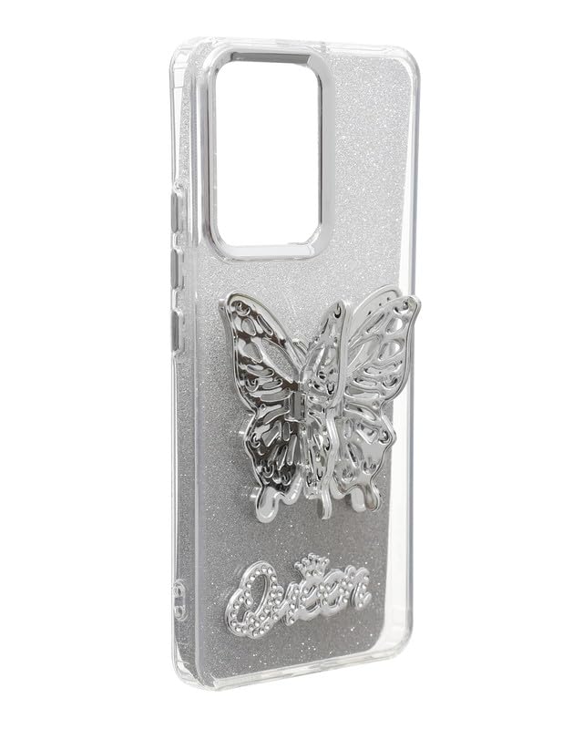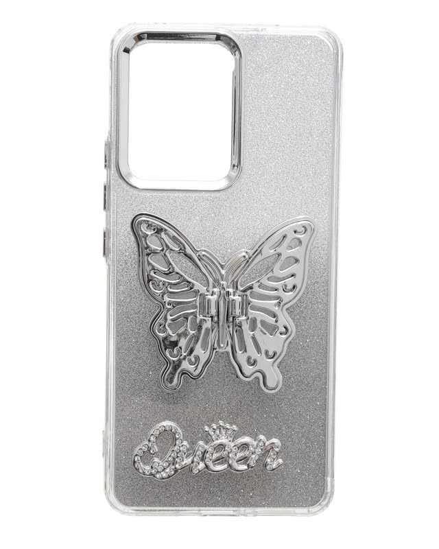 C.F.S - C.F.S Glitter Back Phone Protection Cover With 3D Butterfly Hidden Stand For Oppo Reno 13F - Silver