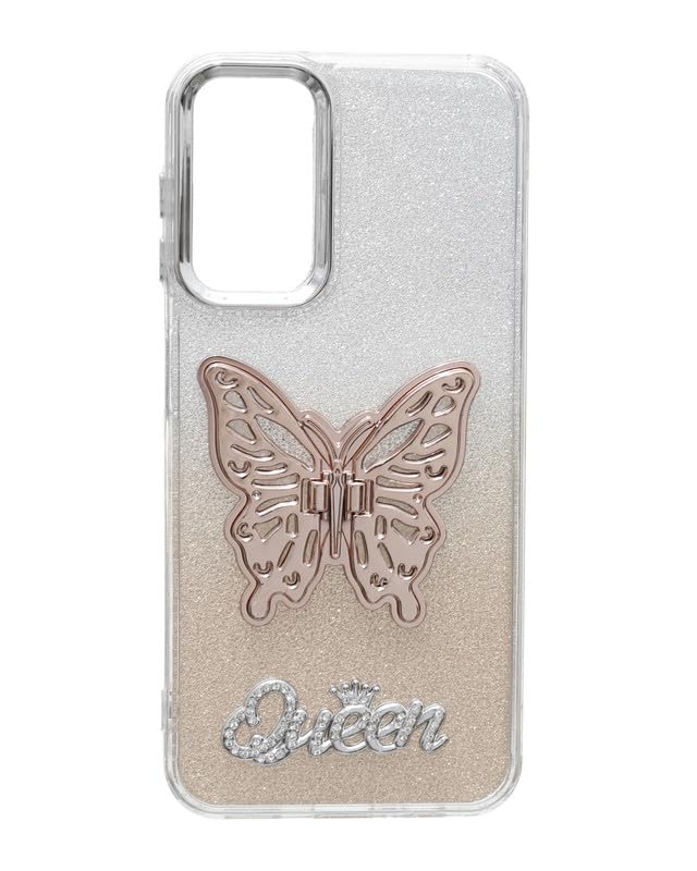 C.F.S - جراب حماية خلفي لامع مع حامل مخفي ثلاثي الأبعاد على شكل فراشة لموبايل سامسونج جالاكسي A14 من C.F.S - ذهبي