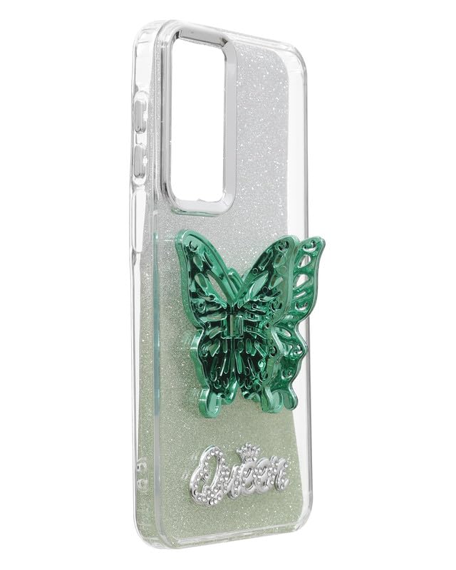 C.F.S - C.F.S Glitter Back Phone Protection Cover With 3D Butterfly Hidden Stand For Samsung Galaxy A16 / A26 - Green