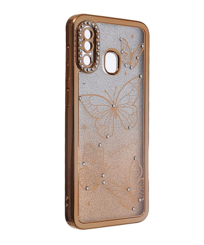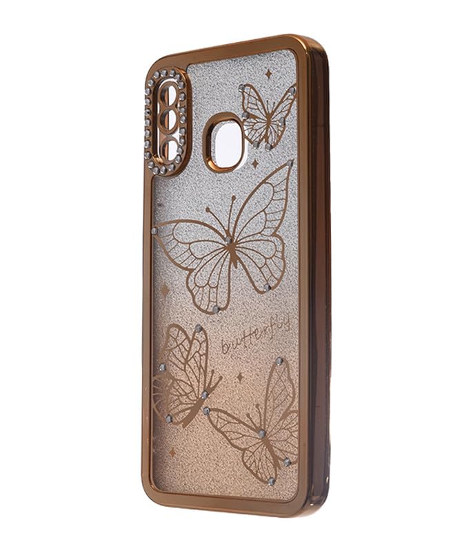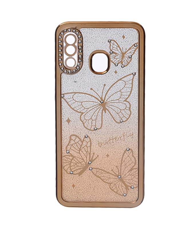 C.F.S - جراب موبايل خلفي لامع من السيليكون الصلب بتصميم فراشة لموبايل سامسونج جالاكسي A20 / A30 من سي اف اس - لون ذهبي