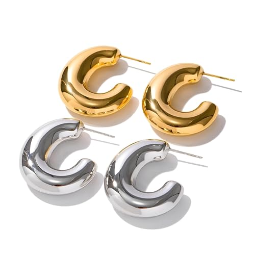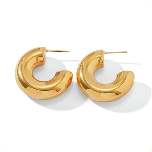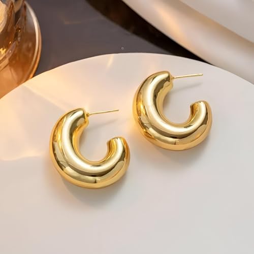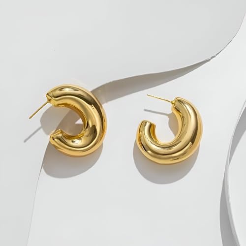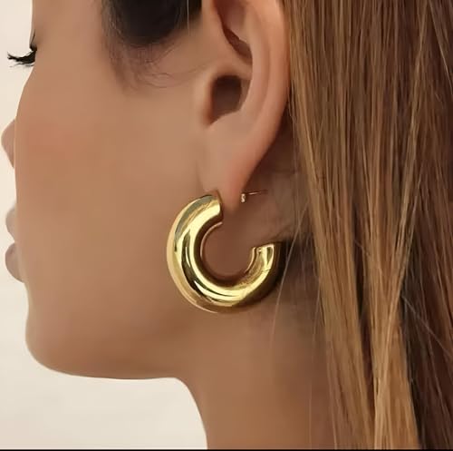 Generic - C-Shape - Wide round earrings with luxurious gloss gold color, designed for women looking for eye-catching everyday elegance