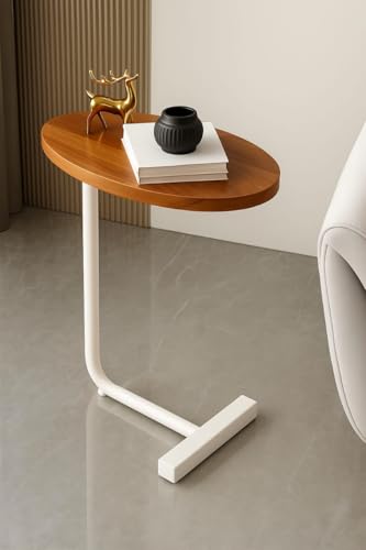 Generic - C Shaped Sofa Side Table – Modern Small Table with Space Saving Design – Wooden Top & Metal Frame – Ideal for Coffee, Laptop, Snack – for Living Room or Bedroom (Woody * White, 1)