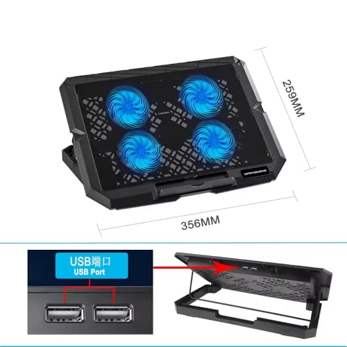 Generic - C4000 Laptop Cooling Fan - 17 Inch - 4 LED Fans with 2 USB Ports - Slim Design - Ergonomic and Practical - Thanks to Backlight