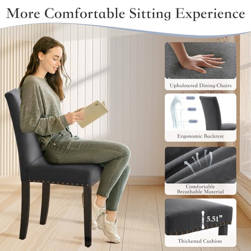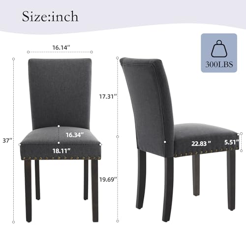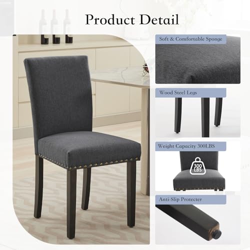CABIHOME - CABIHOME Set of 2 Upholstered Parsons Dining Chairs, Flax Kitchen Chairs with Nailhead Trim & Wood Legs, 300LBS Padded Flax Accent Chairs for Dining Room, Living Room, Dark Grey