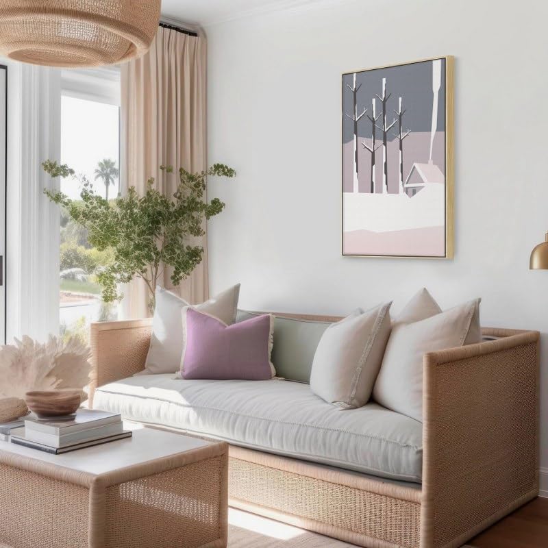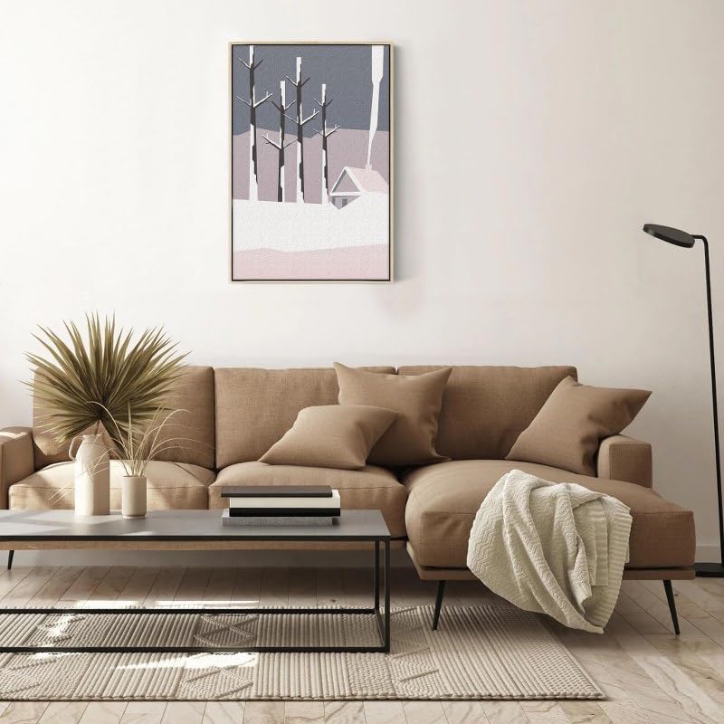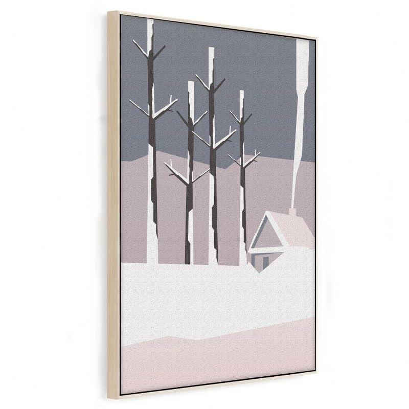 Home Gallery - لوحة فنية جدارية قماشية بيضاء مع شنبر بتصميم كوخ في غابة متجمدة، 1.2 متر × 80 سم