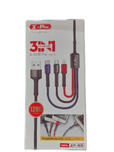 Generic - اكس 69 - 3 في 1 كابل USB لايتنينج الى ميكرو نوع C بطول 1.2 متر من بلس