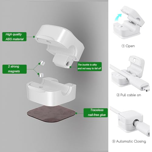 - 【Magnetic Switch】 Our cable clamp has a magnetic lock, which can stabilize the wire body and prevent it from falling off. The buckle is silky and will not fall off easily. Just open and put the cable in, and then it will close easily, unlike ordinary Cable clamps are more convenient and labor-saving.
