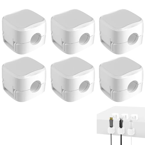 Toulifly - Cable Clips, 6Pcs Magnetic Cord Organizer Holder, Desk Cable Management Holder, Strong Adhesive Charging Cable Keeper, Wire Tidy for Nightstand, Car and Desk, Black