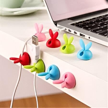 Generic - مشابك كابلات - مجموعة من 4 منظمات كابلات لاصقة من السيليكون للمكتب، تصميم أرنب لطيف، للأجهزة الصغيرة وإدارة الكابلات (8 قطع من اللون المعروض)