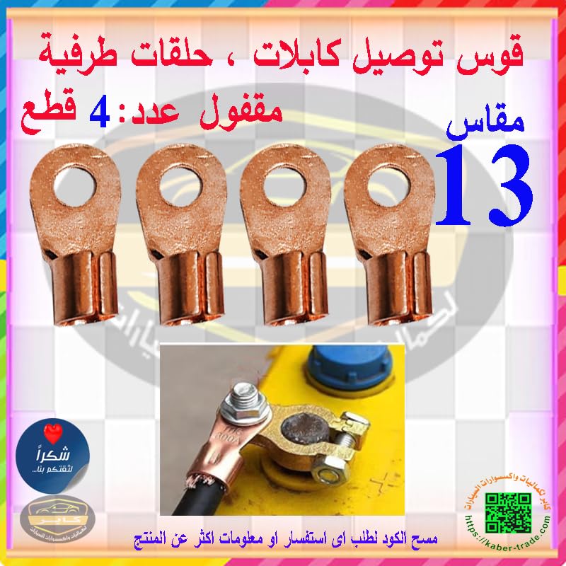 Generic - موصلات اطراف كابلات، قوس عروات اسلاك شديدة التحمل، للسيارات و للوصلات الصناعية وملحقات الاسلاك نحاسى ( قوس مقفول - مقاس 13 - عدد 4 قطع ) - من كابر تريد
