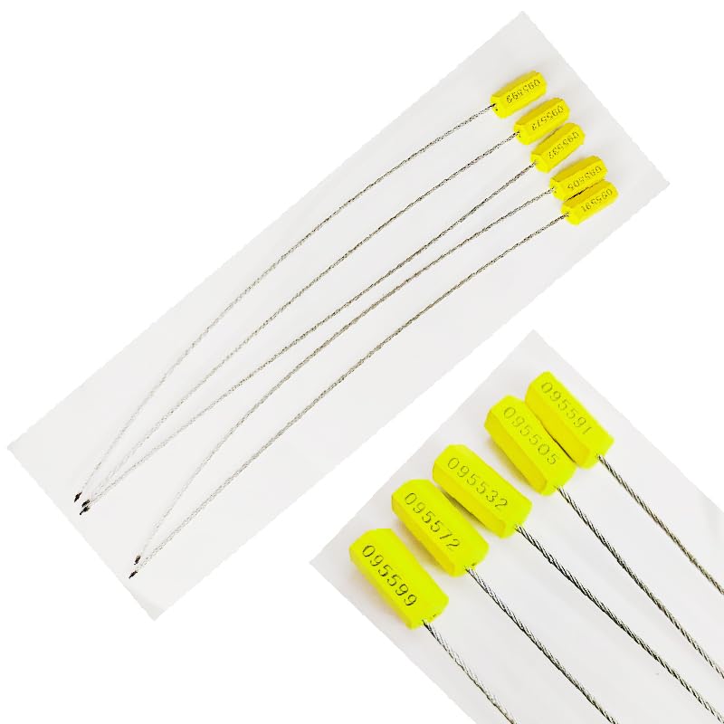 - Double lock point guidelines for extra safety, heavy-duty numbered safety bands, tamper-resistant metal wire bands with wire tie, luggage transport logistics safety label