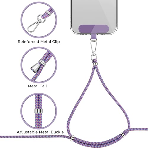 CACOE - حبل قصير للهاتف الخلوي من كاكو، حزام رقبة قابل للتعديل، قطعة واحدة من حزام المعصم، 2 قطعة وسادة، كروس بودي عالمي، متعدد الوظائف متوافق مع معظم الهواتف الذكية (ارجواني وازرق)