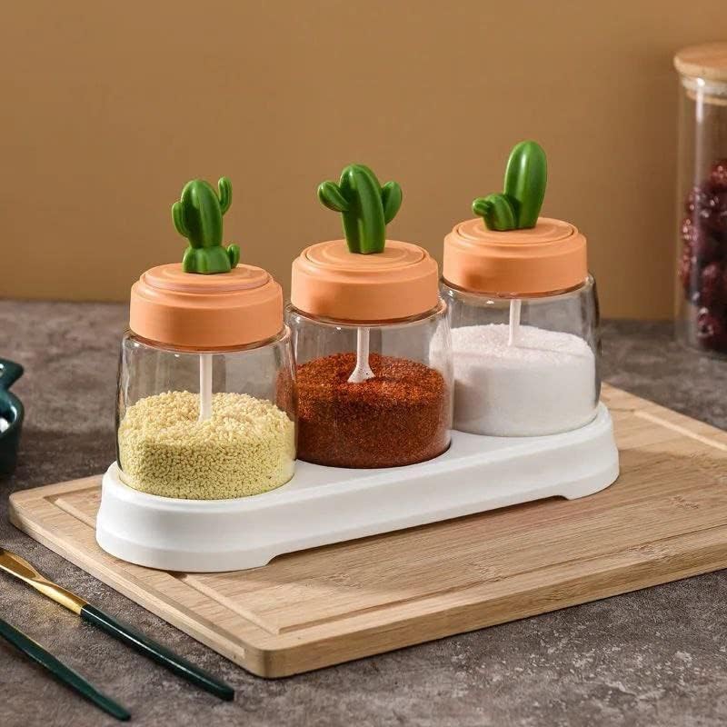 - 🌵 3-Piece Spice Set – Comes with three matching containers for salt, sugar, spices, and seasoning powders.