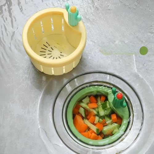 Generic - سلة تصريف على شكل صبار - فلتر حوض متعدد الوظائف مع ميزة التنظيف الذاتي وإزالة النفايات بسهولة من خلال الباب السفلي، مثالية للمطبخ والمنزل