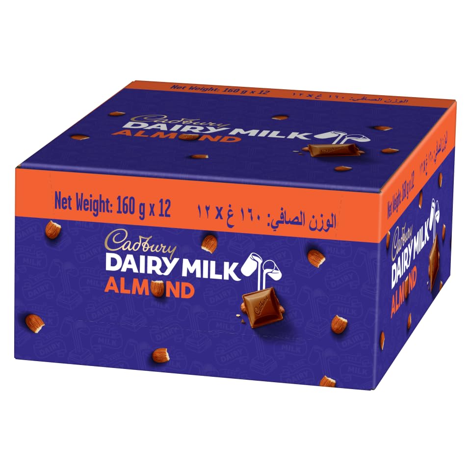 Cadbury - Cadbury Dairy Milk Almond Chocolate Bar (160g) Pack of 12