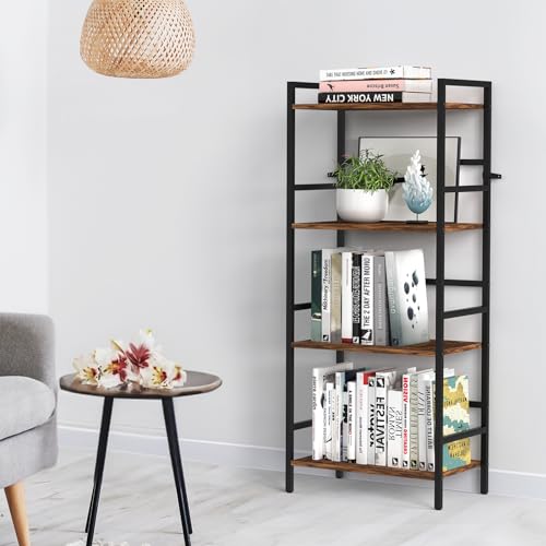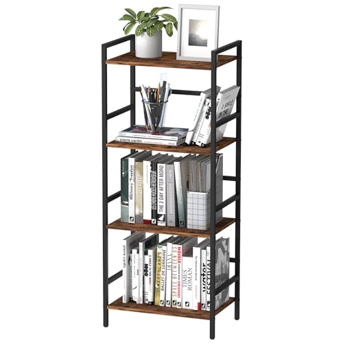 - Practical Book Case for Office:Our bookshelf organizer for bedroom provides the versatility to keep your home's belongings organized and tidy. The 4 tier bookcase is both practical and beautiful, not only as a bookshelf but also as a bedside table, side table, console table, kitchen storage shelf, bathroom organizer rack, etc., suitable for any home decoration.