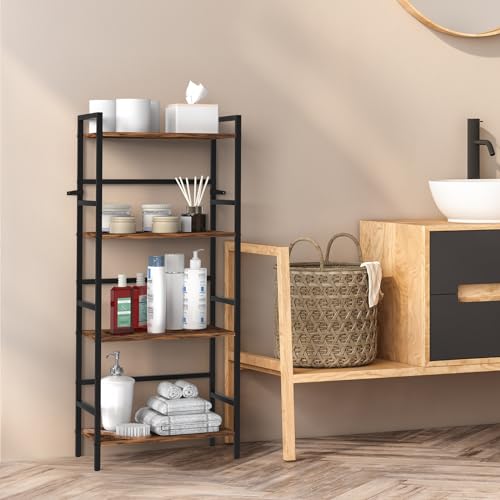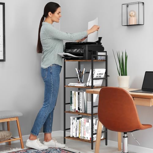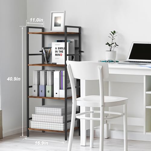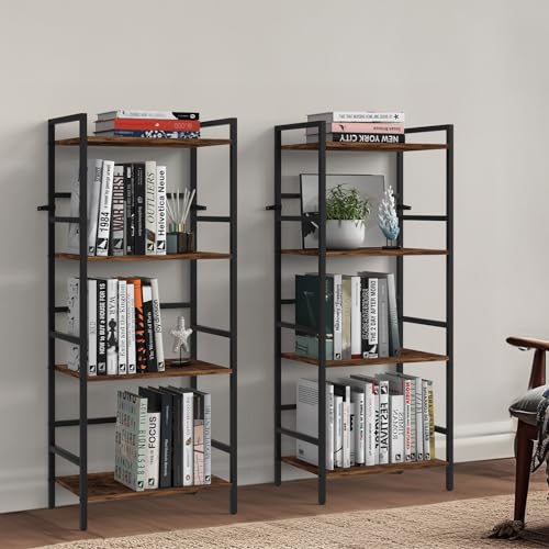 CADUKE - CADUKE 4 Tier Bookcase Industrial Bookshelf with Storage Open Etagere Bookcase Wood Metal Book Shelf Stand Brown Bookshelves for Living Room Bedroom Office