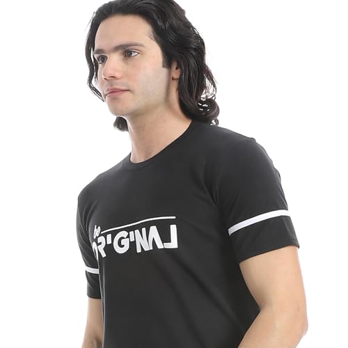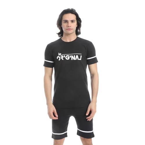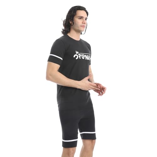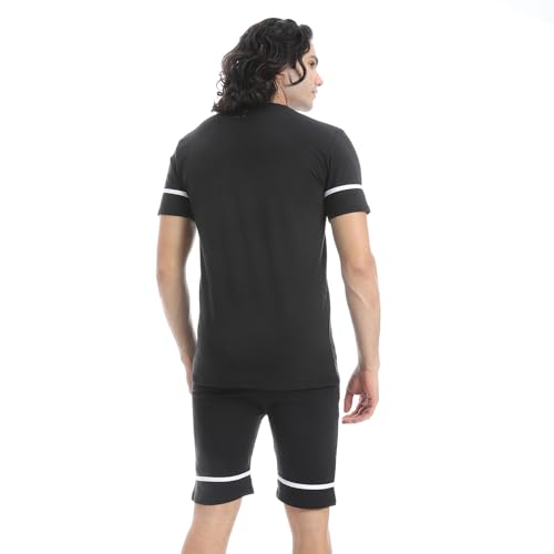 CAESAR - طقم بيجامة قطن نصف كم وشورت للرجال من سيزر، اسود، مقاس M