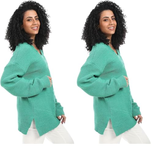 Cesar - CAESAR WOMEN WOOL LONG PULLOVER WITH V NECK,GREEN,ONE SIZE FITS ALL (Pack of 2)