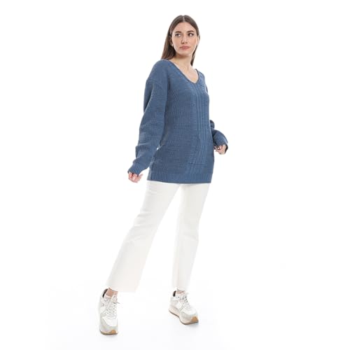 CAESAR - كنزة صوفية من سيزر برقبة V للنساء، قصة عادية بأكمام طويلة، مصنوعة من الصوف، لون أزرق، مقاس موحد