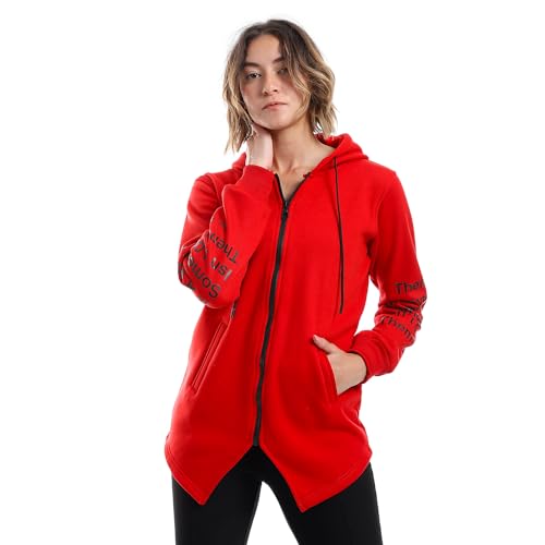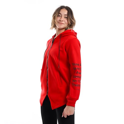 CAESAR - سترة بغطاء للرأس بسوستة أمامي وأكمام بطباعة للنساء من سيزر
