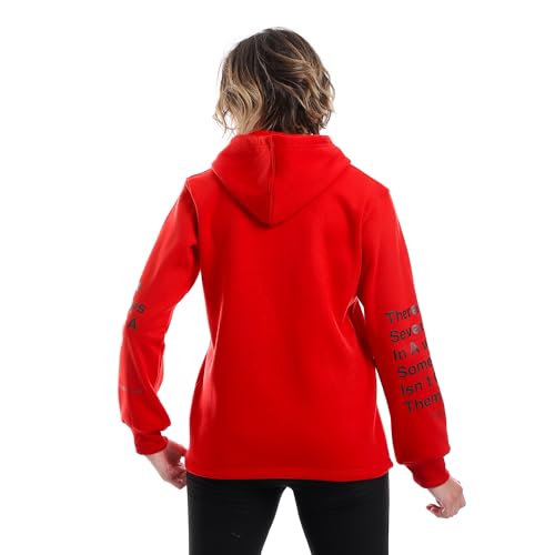 سويت شيرت بغطاء للرأس وسوستة أمامية وأكمام مطبوعة للنساء