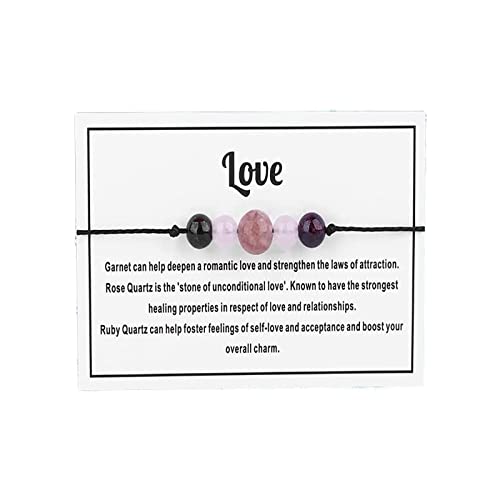 Caiyao - Caiyao Multistyle Healing Crystal Stone Bead Bracelet with Meaningful Card Handmade Adjustable Wax Rope Yoga Amethyst Tigereye Chakra Bracelets for Women Men Meditation Relax Anxiety Jewelry-love