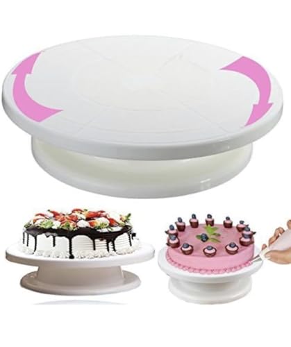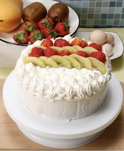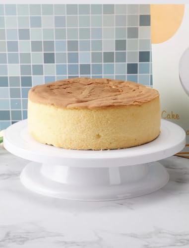 Spaceshoop - حامل كيك دوار لتزيين الكيك، 28 سم، أبيض، بلاستيك خالي من مادة بيسفينول أ، حامل كيك دوار 360 درجة لتزيين الكيك، 28 سم، أبيض، بلاستيك خالي من مادة بيسفينول أ، يدور 360 درجة، مستدير