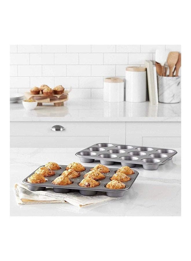 GENERIC - Cake Molds Non Stick Reusable Muffin Cupcake Baking Pan Of 12 Cup Black 26cm