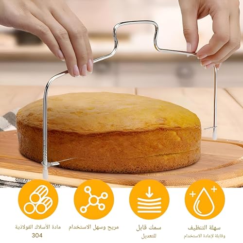 - ADJUSTABLE AND EASY TO USE: The adjustable cutting wire in this cake cutter allows you to customize the thickness of the cake layers according to your specific needs. The ergonomic handle design promotes safe and easy operation, allowing you to create perfect layers without the risk of uneven cutting or uncomfortable hand. This easy-to-use feature makes it suitable for bakers of all skill levels, from beginner to veteran professionals.
