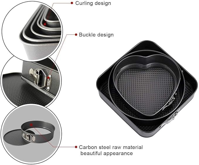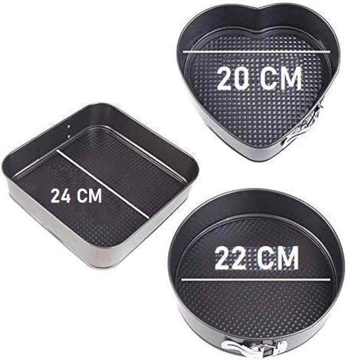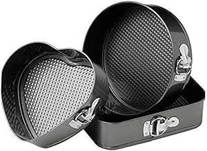 Generic - Cake & Tart Baking Mold Set (Round, Square, Heart) Easy Release Mechanism (CLIPS), Non-Stick for Professional Results ka