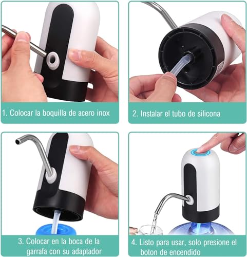 - بطارية قابلة لإعادة الشحن بمنفذ USB: يحتوي موزع المياه هذا على بطارية ليثيوم أيون مدمجة بسعة 1200 مللي أمبير في الساعة، والتي يتم إعادة شحنها بواسطة كابل USB المرفق. بقوة 4 واط، يمكنها ضخ 1 لتر من الماء في 50 ثانية. يحتوي على نطاق ضخ يصل إلى حوالي 60 لترًا من الماء، بمجرد شحنها. لا حاجة للشحن كل يوم.