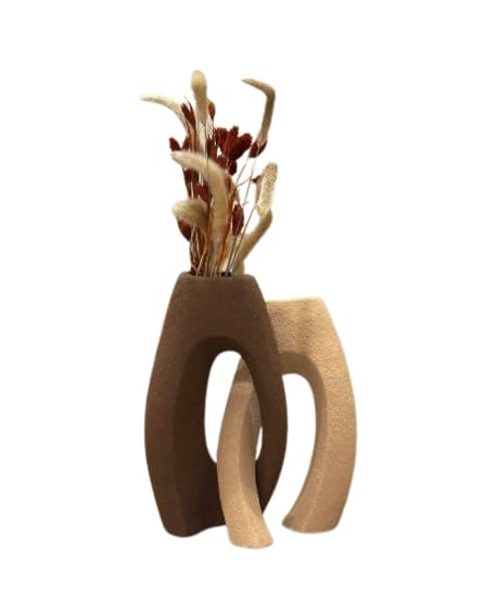 Generic - فازة مزدوجة منحوتة، فخار مزخرف تجريدي متشابك مصنوع يدويًا، فن سيراميك حديث، لون ترابي، لغرفة المعيشة، المكتب، المدخل من كالدا